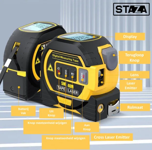 - 3 en 1 pratique : laser, mètre ruban intégré et niveau à bulle.